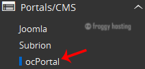 4. On the left side of your screen you should locate the "Portal/CMS" category. Click on it and then click on the "ocPortal" link that will appear.